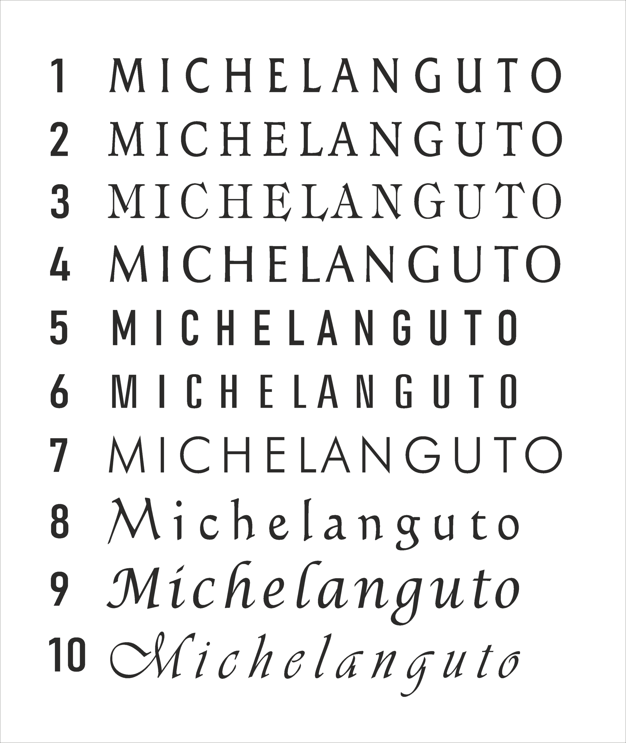 Sdělení na pomníku lze vytvořit prostřednictvím sekaného nebo strojového písma. Sekané písmo spočívá v tradiční metodě, kdy je sekáno do kamene ručními nástroji a vybírat můžete ze 3 základních fontů. Při strojovém písmu se pak používá přesná metoda pískováním, která obsahuje 12 základních vzorů. Po předchozí domluvě lze vytvořit i font na přání zákazníka. Oba druhy písma je možné barevně upravovat - zlatit 24-karátovým zlatem, stříbřit a černit.